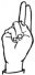 На ћирилици написано МИНА КЛЕПАЦ састоји се из 10 слова [?]. Исписано ћириличном једноручном азбуком за глувонеме: